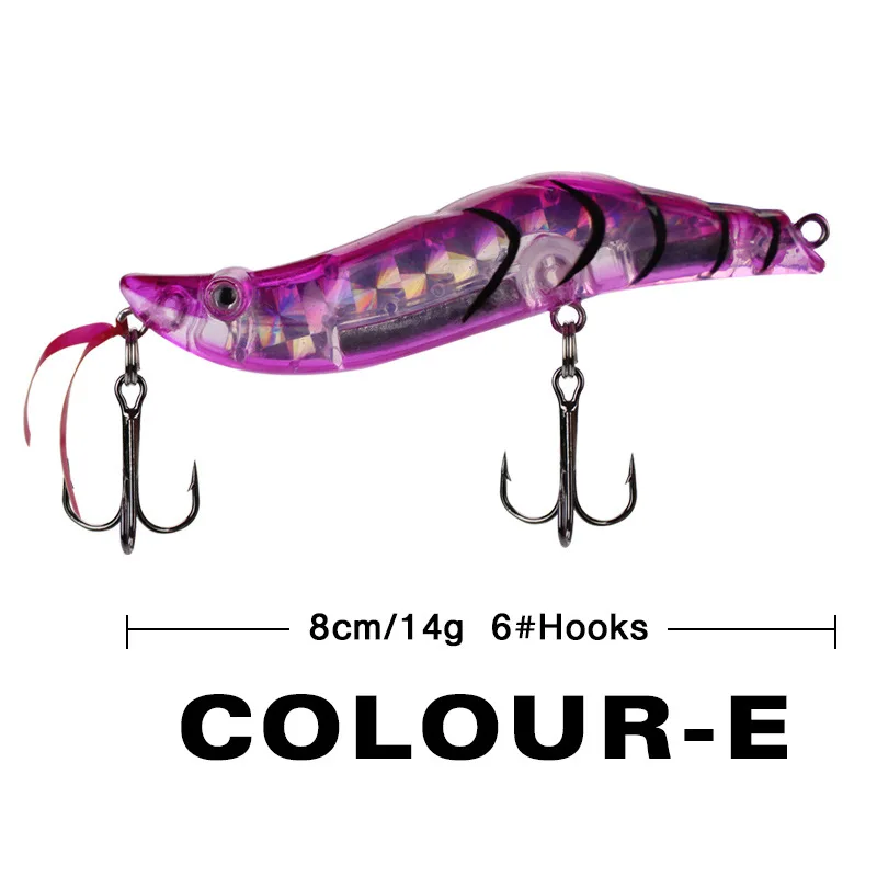 Опис особливостей: форма цілого креветки приймає унікальний дизайн аеродинамічного стилю, а також має великий розмах при повільному тягненні у воді, що не тільки надає життя, але й вирішує проблему відсутності плавальної позиції, коли загальна штучна приманка повільно тягнеться.
