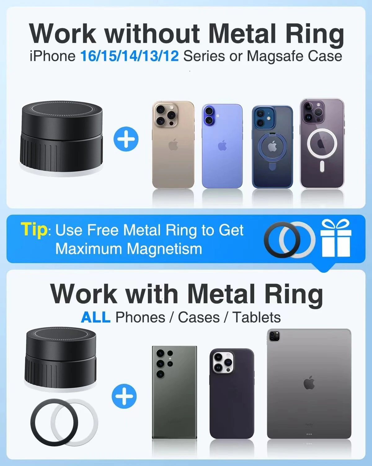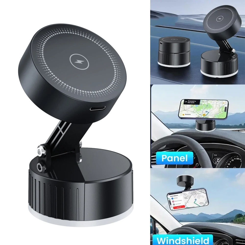 Розмір продукту: 6X6X4.8CMn Особливість 1: 15W Швидка бездротова зарядкаn Особливість 2: Вакуумна присоскаn Особливість 3: Складний автомобільний тримач для приладової панелі/скла/гладкої поверхніn Особливість 4: Автомобільний тримач бездротової зарядкиn Особливість 5: Магнітна швидка зарядка для Iphone 16 15 14n - Особливість 6: Магнітний бездротовий автомобільний зарядний пристрій